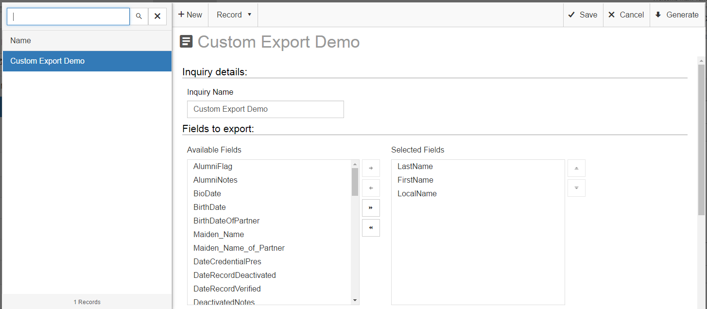 Note: previously saved CMD “Individual Inquiries” records will be available but it will only show/use the fields that eContact has currently implemented in our Export tool